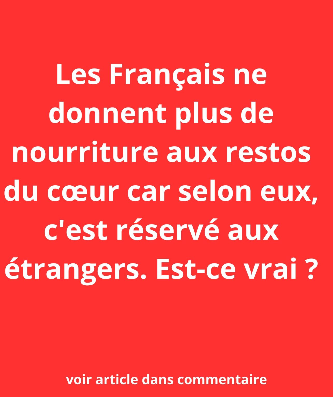 Les Restos du Cœur ne font pas de distinction par nationalité et n'ont jamais annoncé le faire. Cependant, une partie de la population ressent qu'elle est mise à l'écart, un sentiment qui ne surgit pas de nulle part.