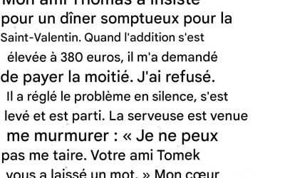 Mon petit ami m'a demandé de partager l'addition de la Saint-Valentin… Ce qui s'est passé ensuite a mis fin à nos sept années de relation.