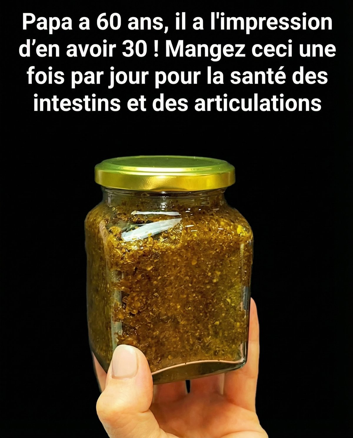 Avoir une bonne santé intestinale et articulaire est essentiel pour maintenir une qualité de vie optimale. Aujourd’hui, nous vous proposons un remède naturel simple et efficace que vous pouvez intégrer dans votre quotidien pour améliorer la santé de votre intestin et de vos articulations, tout en renforçant votre immunité. Si votre corps présente des intolérances ou allergies à l’un des ingrédients, veuillez consulter votre médecin avant de consommer ce mélange. Voici la recette en détail :