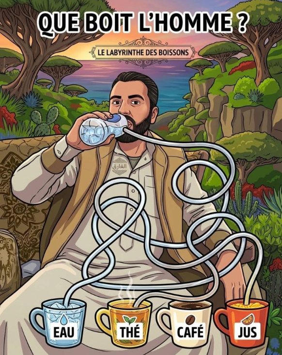- Ce type d’image est un jeu d’observation et de logique. Il faut suivre chaque tube avec attention pour découvrir la bonne réponse. Dans ce cas, après avoir bien regardé les connexions, on peut conclure que la boisson que l’homme boit est l’eau.