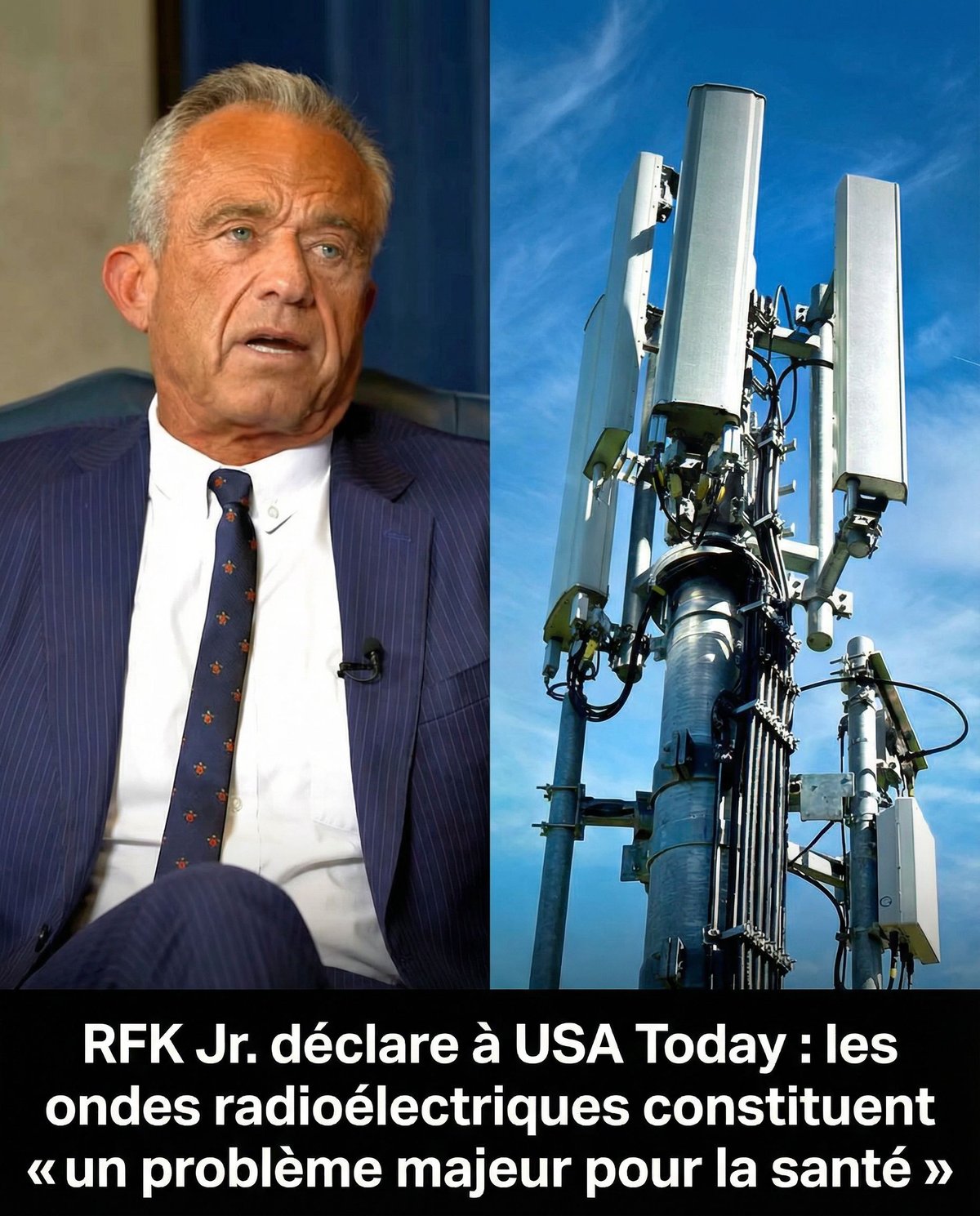 Le secrétaire américain à la Santé et aux Services sociaux (HHS), Robert F. Kennedy Jr., a déclaré au média USA Today que le rayonnement sans fil émis par les téléphones portables, les antennes-relais et autres infrastructures sans fil constitue une « préoccupation majeure de santé publique ».